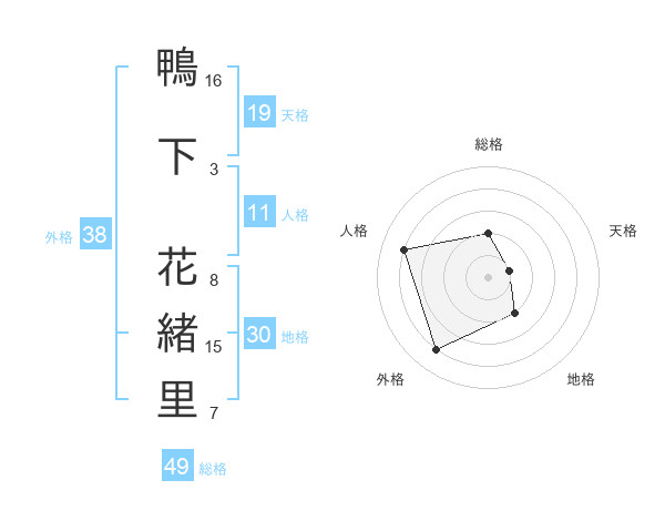 鴨下 花緒里さんを姓名の画数から五運を鑑定