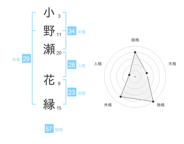小野瀬 花縁さんの総格は57画の4点!