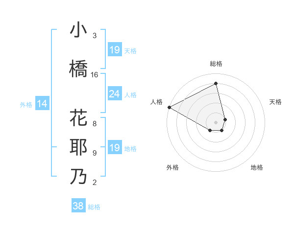 小橋 花耶乃さんを姓名の画数から五運を鑑定