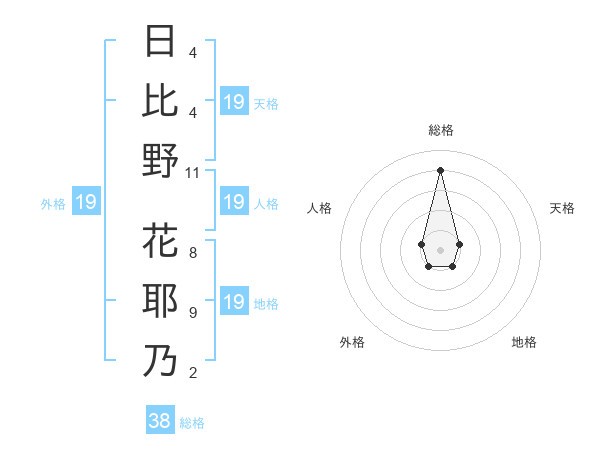 日比野 花耶乃さんの総格は38画の4点!