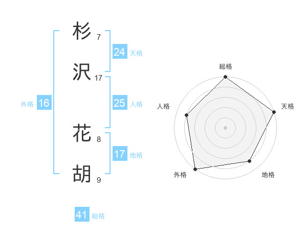 杉沢 花胡さんを姓名の画数から五運を鑑定