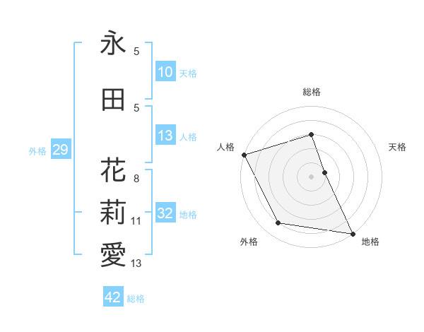 永田 花莉愛さんの総格は42画の3点!