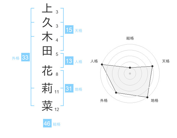 上久木田 花莉菜さんを姓名の画数から五運を鑑定