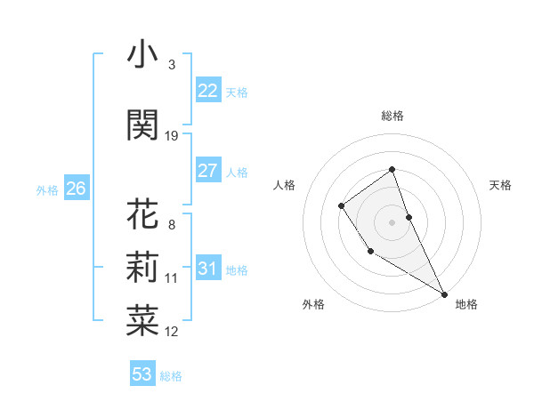 小関 花莉菜さんの総格は53画の3点!