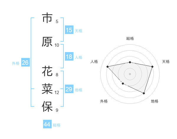 市原 花菜保さんの地格は29画の4点!