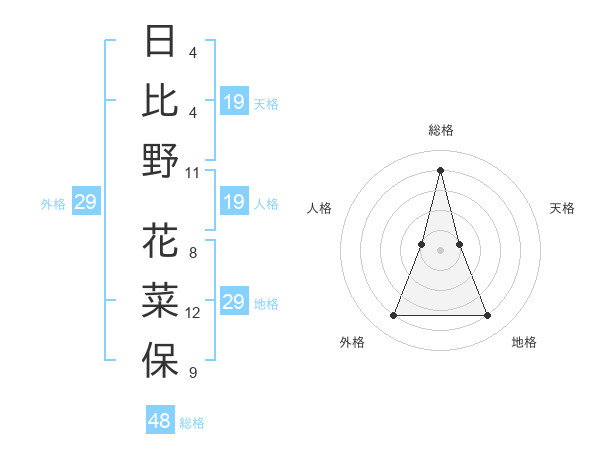 日比野 花菜保さんの外格は29画の4点!