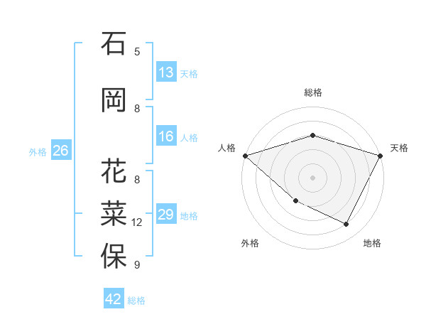 石岡 花菜保さんを姓名の画数から五運を鑑定