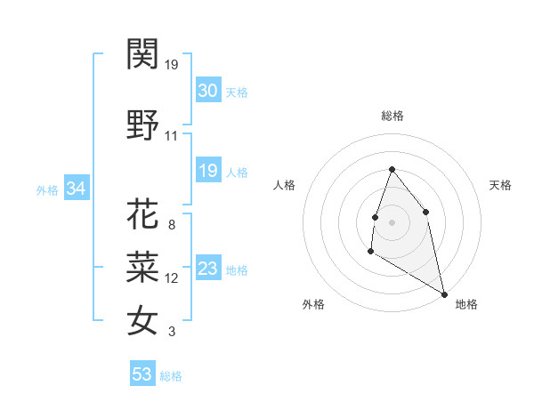関野 花菜女さんの総格は53画の3点