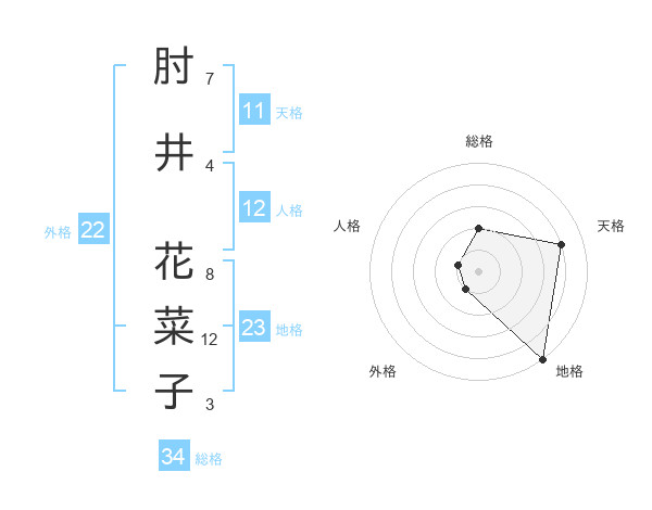 肘井 花菜子さんを姓名の画数から五運を鑑定