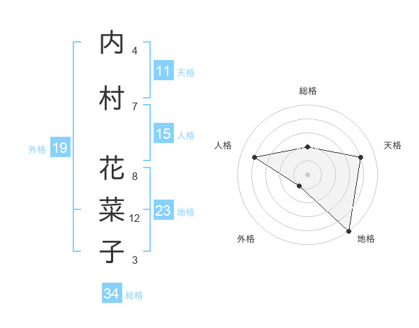 内村 花菜子さんを姓名の画数から五運を鑑定