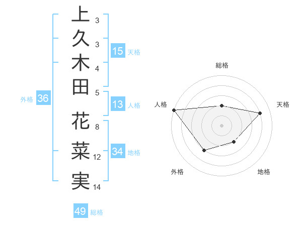 上久木田 花菜実さんを姓名の画数から五運を鑑定