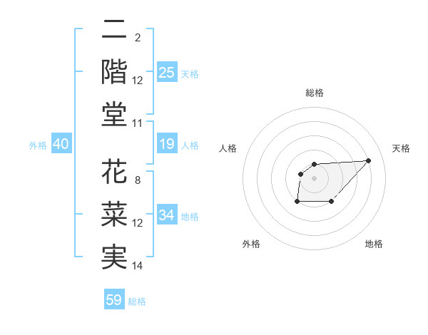 二階堂 花菜実さんの天格は25画の4点!