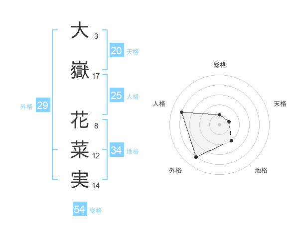 大嶽 花菜実さんを姓名の画数から五運を鑑定