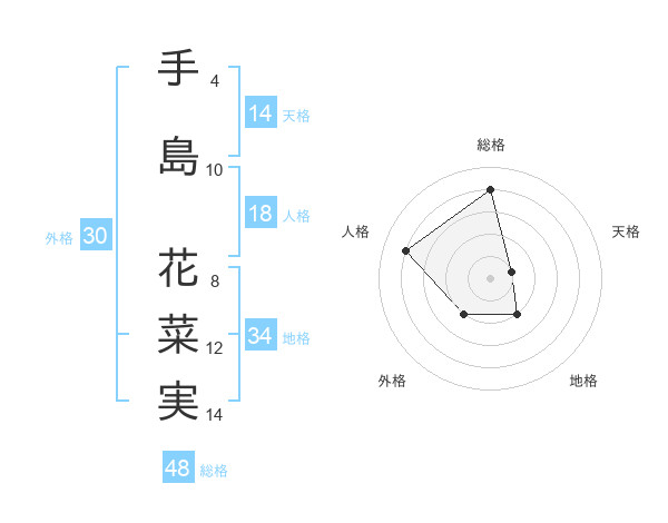 手島 花菜実さんを姓名の画数から五運を鑑定