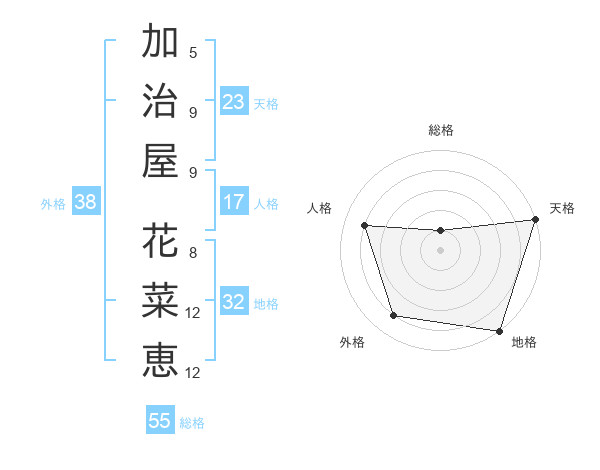 加治屋 花菜恵さんの天格は23画の5点!