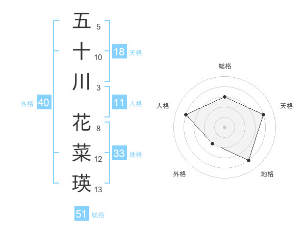 五十川 花菜瑛さんの総格は51画の3点!