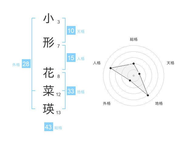 小形 花菜瑛さんを姓名の画数から五運を鑑定