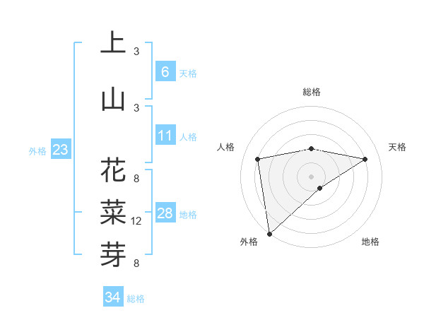 上山 花菜芽さんの天格は6画の4点!
