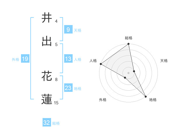 井出 花蓮さんの総格は32画の5点!