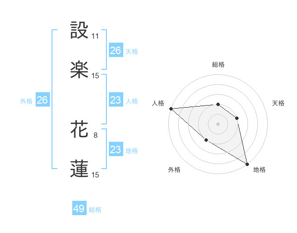 設楽 花蓮さんを姓名の画数から五運を鑑定