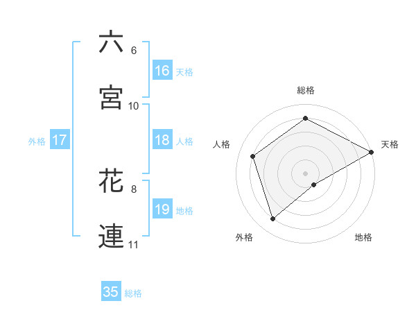 六宮 花連さんの総格は35画の4点!
