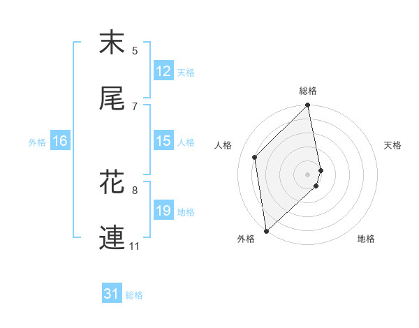 末尾 花連さんの総格は31画の5点!
