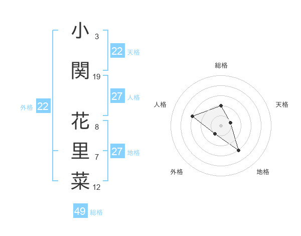 小関 花里菜さんを姓名の画数から五運を鑑定