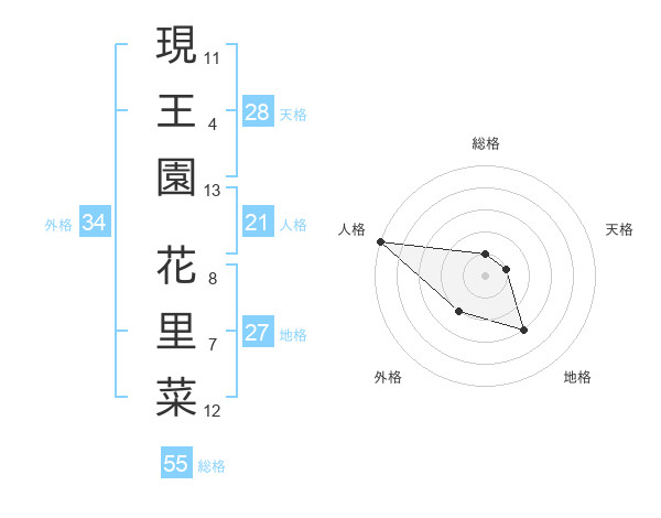 現王園 花里菜さんを姓名の画数から五運を鑑定