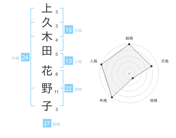 上久木田 花野子さんを姓名の画数から五運を鑑定