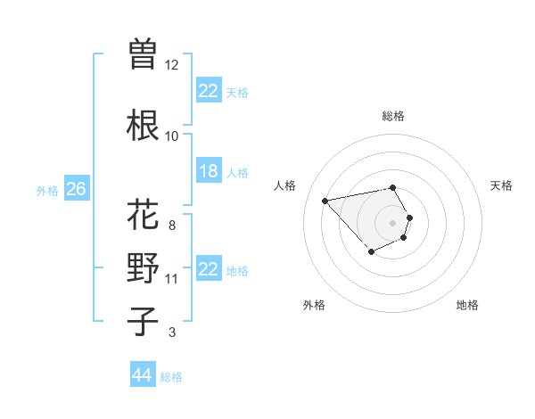 曽根 花野子さんを姓名の画数から五運を鑑定