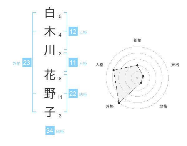 白木川 花野子さんを姓名の画数から五運を鑑定