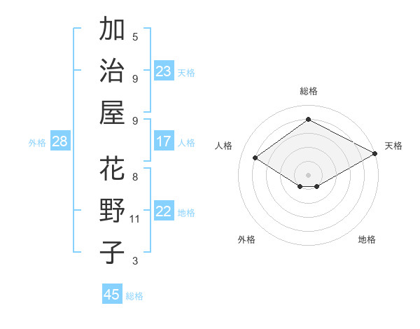 加治屋 花野子さんを姓名の画数から五運を鑑定