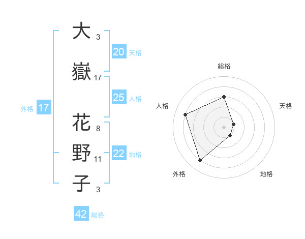 大嶽 花野子さんを姓名の画数から五運を鑑定
