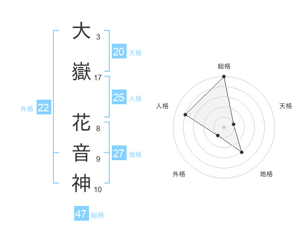 大嶽 花音神さんを姓名の画数から五運を鑑定