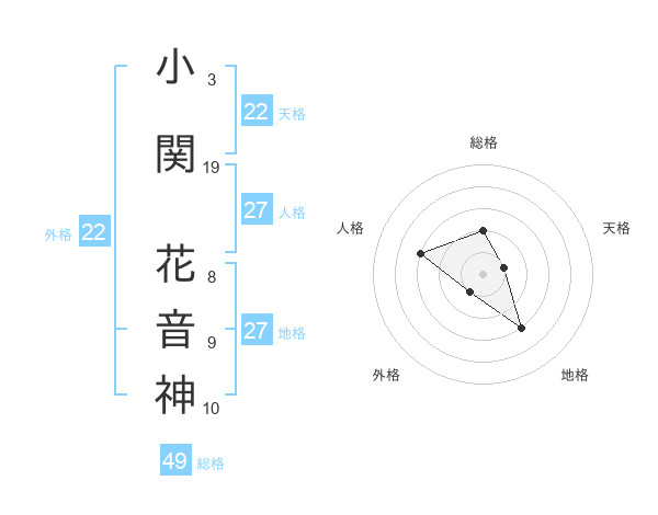 小関 花音神さんの総格は49画の2点!