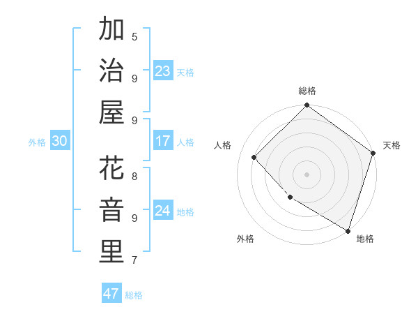 加治屋 花音里さんを姓名の画数から五運を鑑定