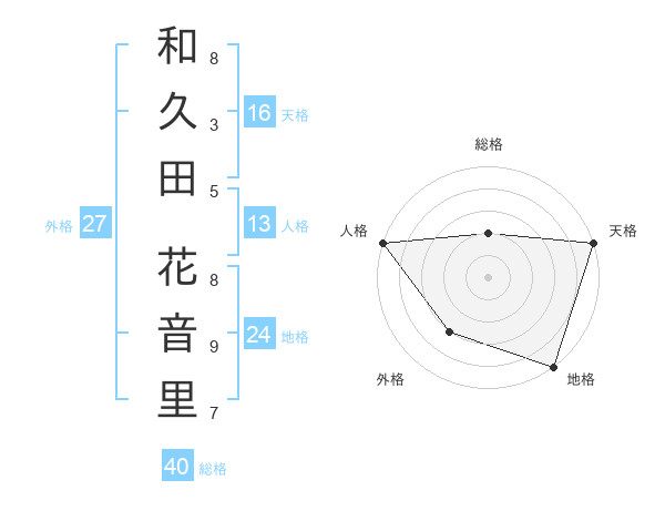 和久田 花音里さんを姓名の画数から五運を鑑定