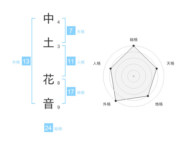 中土 花音さんの外格は13画の5点!