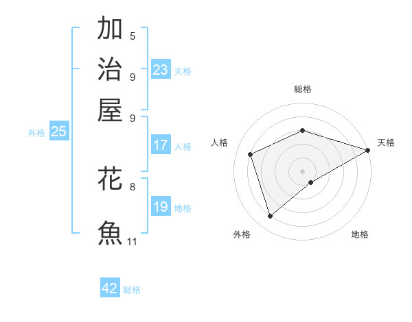 加治屋 花魚さんを姓名の画数から五運を鑑定