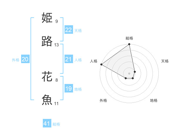 姫路 花魚さんを姓名の画数から五運を鑑定