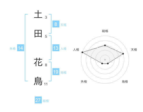 土田 花鳥さんを姓名の画数から五運を鑑定