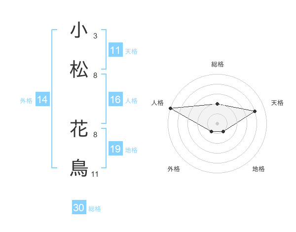 小松 花鳥さんを姓名の画数から五運を鑑定