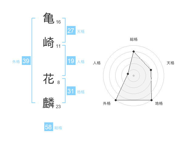 亀崎 花麟さんを姓名の画数から五運を鑑定