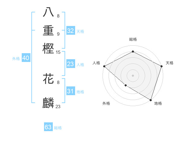 八重樫 花麟さんの天格は32画の5点!