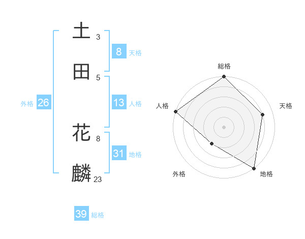 本サイトの鑑定結果の正当性は保証しません。鑑定結果は参考程度にお読みください。実際の名づけにご利用される場合は、姓名判断についてご自身でよくお調べください。