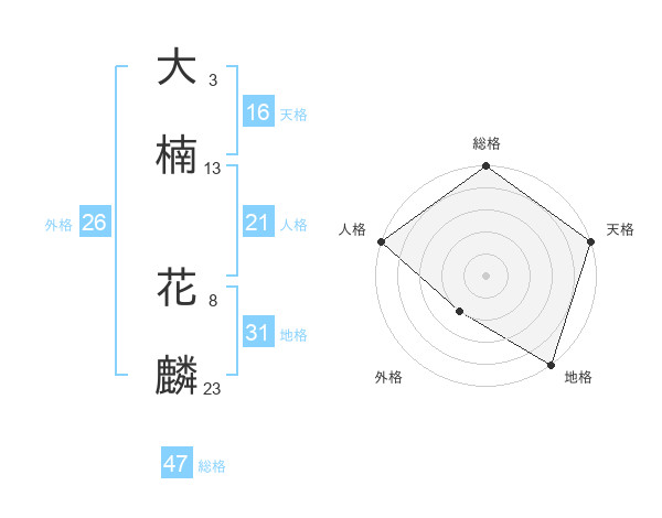 大楠 花麟さんの総格は47画の5点!