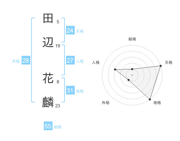 田辺 花麟さんを姓名の画数から五運を鑑定