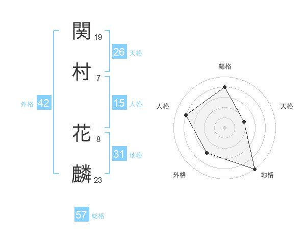 関村 花麟さんの総格は57画の4点!