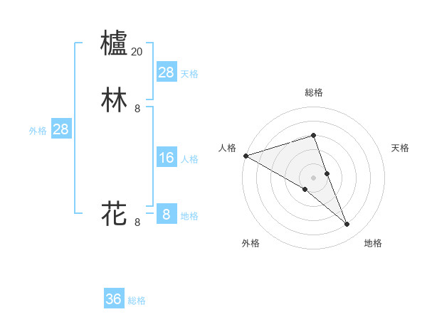 櫨林 花さんの総格は36画の3点!