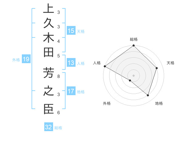 上久木田 芳之臣さんを姓名の画数から五運を鑑定